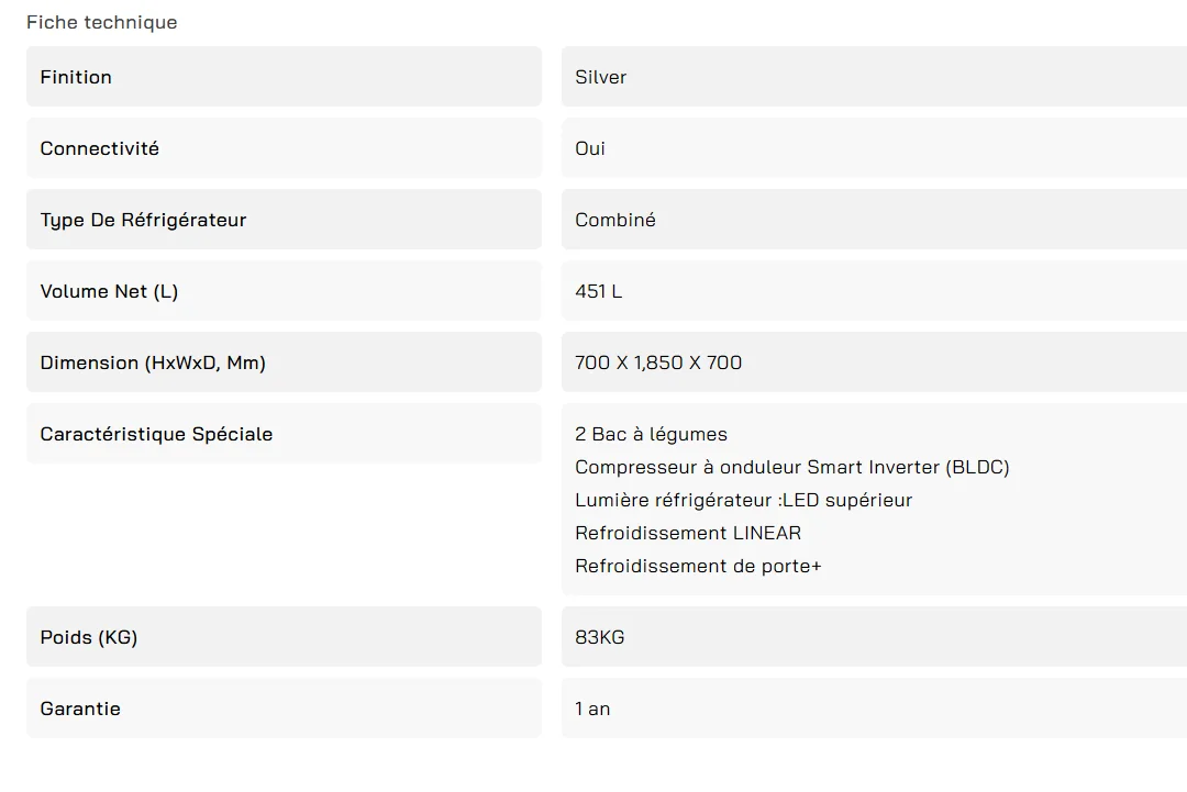 RÉFRIGÉRATEUR LG COMBINE 70CM SILVER Référence : GR-B639NLCM